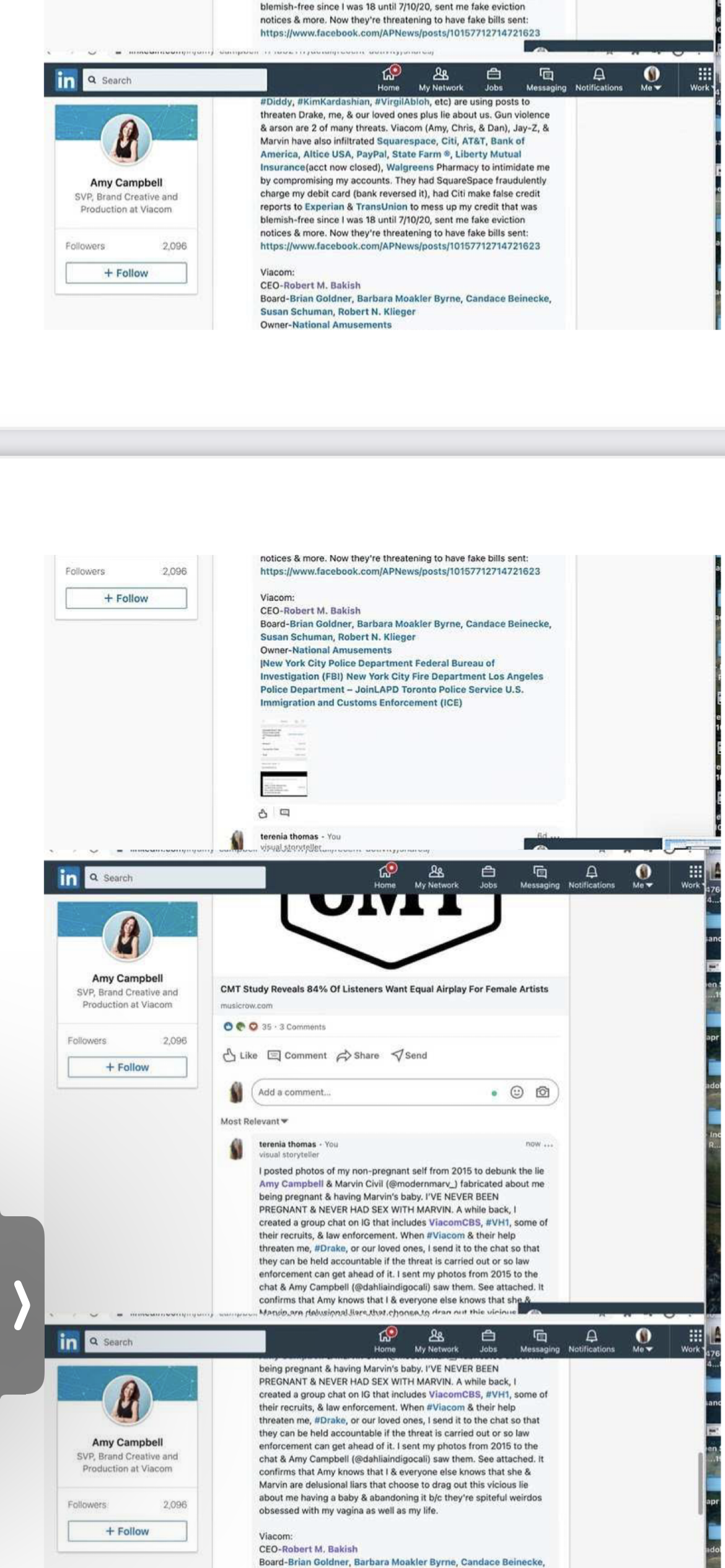 When I was laid off from Viacom (now Paramount) / VH1 in 2017, Amy Campbell took it upon herself to request me as a friend on Facebook. Yet, I learned in 2020, she defamed me and helped destroy my career all the while threatening me and my loved ones.