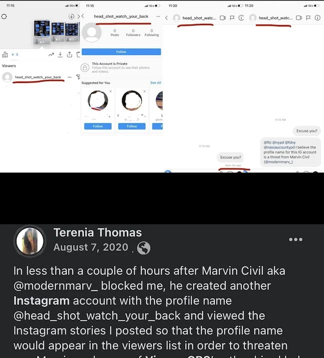 I posted screenshots on my Instagram stories of some of the threats made towards me & Drake for over the past year from ViacomCBS /VH1 (Daniel Blau Rogge & Chris McCarthy) by their hired help (Marvin Civil, Kanye West, Will Smith, JAY-Z, Diddy, Kim Kardashian West, Kourtney Kardashian, Kylie Jenner, Virgil Abloh, & others). I unblocked Marvin on IG to tag him, get proof he saw my record of his threats, and for him to see the evidence I have that contradicts his many lies/delusions. I’m pleased to say that he saw some of the most critical posts, blocked me, & created a new IG account to threaten me as shown in the screenshots. Marvin did something like that back in April where he created an account specifically to threaten me in a similar manner on the TikTok profile I had then. In the video, you’ll see some of the posts with Viacom & the rest of their hired help also tagged as I usually do so there’s evidence of their threats in their respective IG inboxes.